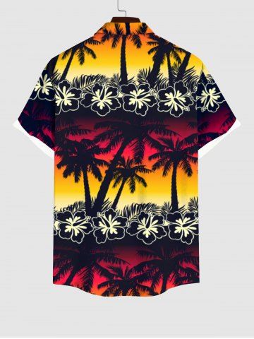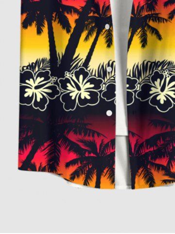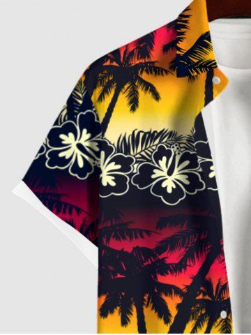 Chemise à Manches Courts> Chemise Ombre à Ciel et Arbre Noix de Coco Imprimés avec Poche Grande Taille pour Homme
