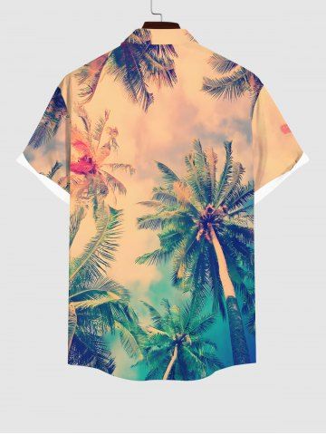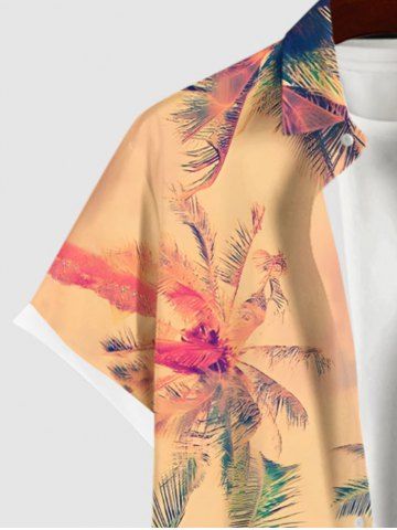 Chemise à Manches Courts> Chemise Ombre à Ciel Tropical Arbre Noix de Coco Imprimé Grande Taille avec Poche