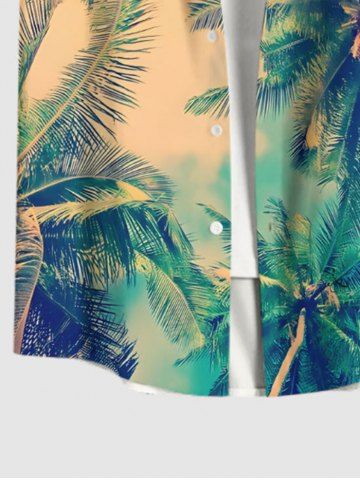 Chemise Ombre à Ciel Tropical Arbre Noix de Coco Imprimé Grande Taille avec Poche - Vert - Vert