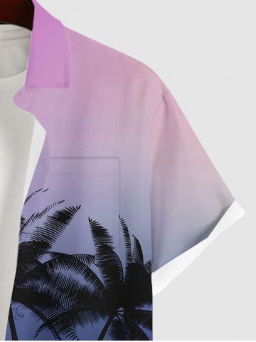 Chemise Ombre à Imprimé Cocotier à Boutons Grande Taille avec Poche pour Homme - Pourpre - Pourpre
