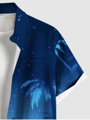 Chemise Ombre à Imprimé Cocotier et Galaxie Grande Taille avec Boutons - Bleu Ciel - Bleu Ciel