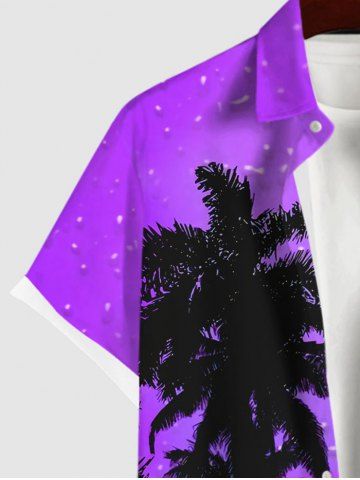 Chemise Ombre à Imprimé Cocotier et Galaxie Grande Taille avec Poche Kangourou pour Homme - Pourpre - Pourpre