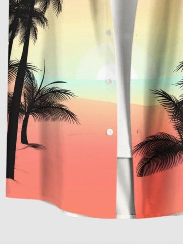 Chemise à Manches Courts> Chemise Ombre à Imprimé Cocotiers et Oiseaux avec Boutons Grande Taille pour Homme