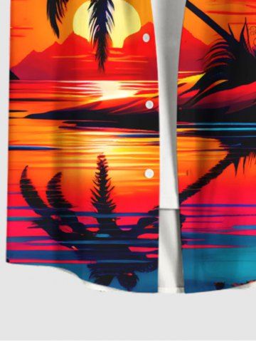 Chemise Ombre à Imprimé Coucher de Soleil Montagne et Cocotiers avec Poche Grande Taille pour Homme - Rouge - Rouge