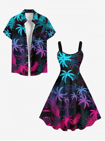 R*****r5Ombre Coconut Tree Palm Leaf Print Plus Size Matching Hawaii Beach Outfit for CouplesColor: BLACKThis outfit is so cute and the material is soft. It's very colorful. The dress is true to size. I got XXL and it fits perfectly. Husband shirt is L and fits him very well. I can't wait to wear these on our cruise in November.