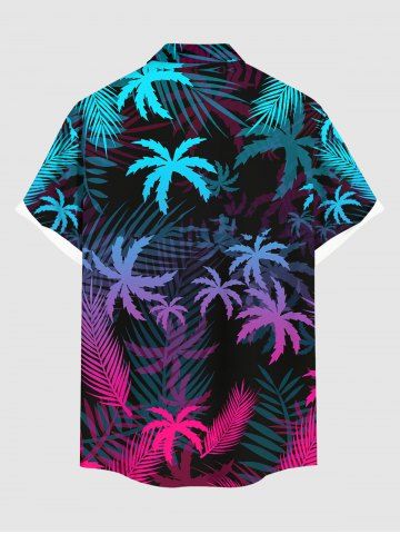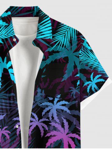 Chemise Ombre à Imprimé Feuille de Palmier et Cocotier Grande Taille avec Poche pour Homme - Noir - Noir
