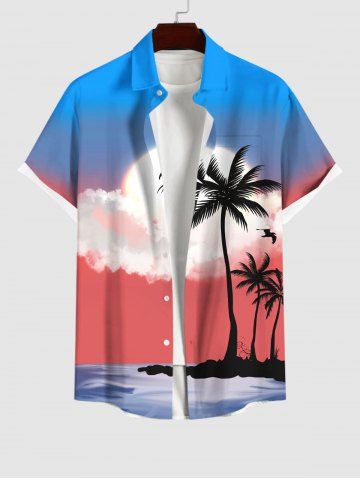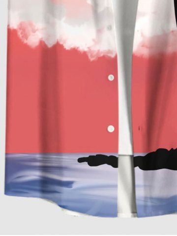 Chemise Ombre à Paupière Lune et Noix de Coco Imprimés avec Poche de Grande Taille pour Homme - Multi-a - L