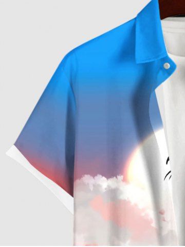 Chemise à Manches Courts> Chemise Ombre à Paupière Lune et Noix de Coco Imprimés avec Poche de Grande Taille pour Homme