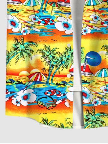 Chemise à Manches Courts> Chemise Parapluie Grande Taille Boutonnée à Fleur et Arbre Noix de Soleil