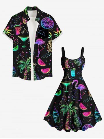 Chemise Pastèque Ananas Fruit Imprimés de Grande Taille avec Poche - Noir - Noir