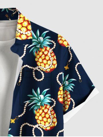 Chemise Perlée Imprimée Ananas à Poches Grande Taille pour Homme - Noir - Noir