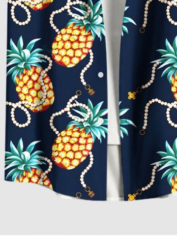 Chemise Perlée Imprimée Ananas à Poches Grande Taille pour Homme - Noir - Noir