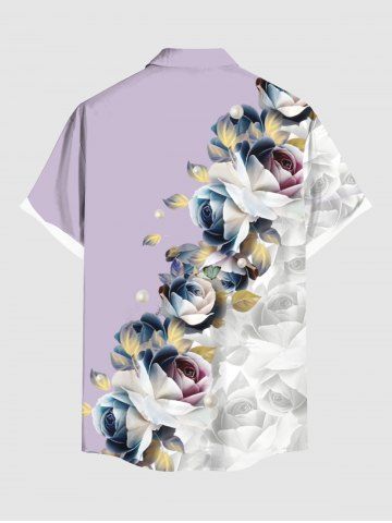 Chemise à Manches Courts > Chemise Plante Feuille Fleur Imprimées en Blocs de Couleurs avec Poche de Grande Taille