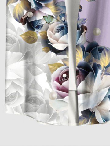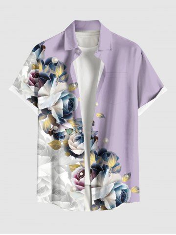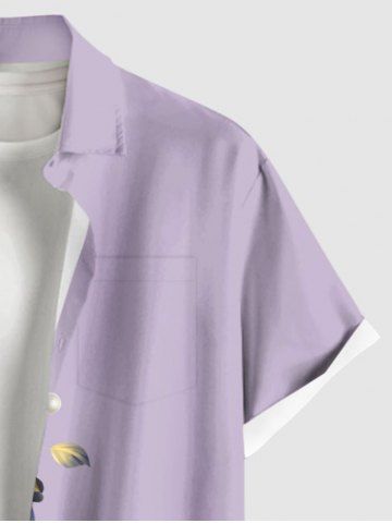 Chemise Plante Feuille Fleur Imprimées en Blocs de Couleurs avec Poche de Grande Taille - Violet Clair - Violet Clair