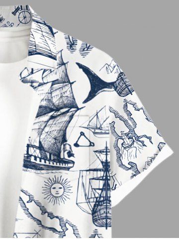 Chemise Plissée Bouée de Pirate Imprimé avec Poche de Grande Taille en Cuir PU - Blanc - Blanc