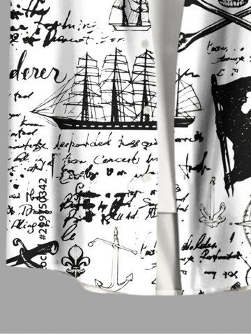 Chemise Plissée Rose Lettre Peinture D'Encre avec Poche de Grande Taille en Lin pour Homme - Blanc - Blanc