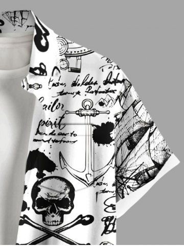 Chemise Plissée Rose Lettre Peinture D'Encre avec Poche de Grande Taille en Lin pour Homme - Blanc - Blanc