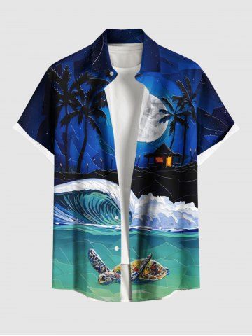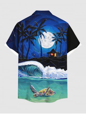 Chemise pour homme grande taille à imprimé tortue, vague, cocotier, lune et galaxie ombrée, motif créatures marines d'Hawaï. - Multi-a - 6xl