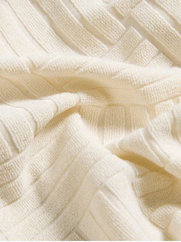 Chemise Rayée en Jacquard et Tissu Eponge à Manches Courtes - Café Lumière - Xl