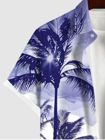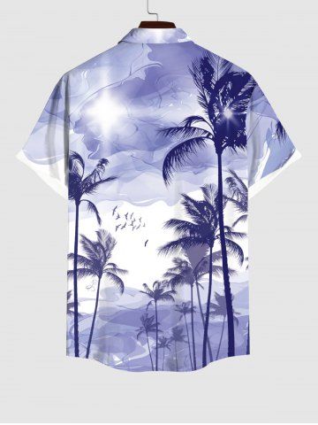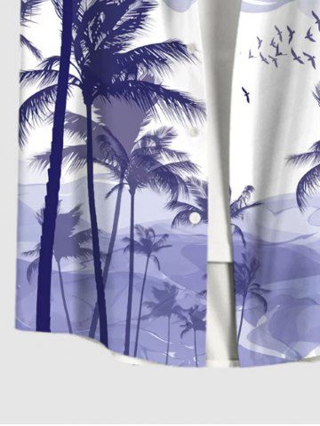 Chemise Relevé Boutonnée Arbre Noix de Coco et Ombre Imprimés avec Poche de Grande Taille pour Homme - Violet Clair - Violet Clair