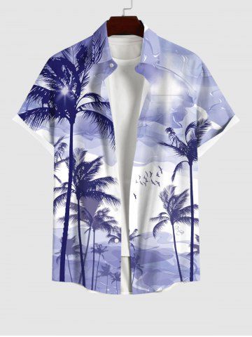 Chemise à Manches Courts> Chemise Relevé Boutonnée Arbre Noix de Coco et Ombre Imprimés avec Poche de Grande Taille pour Homme