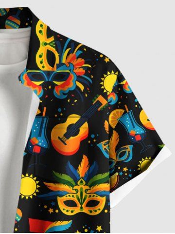 Chemise Tressé Imprimé Soleil avec Poche et Guitare Colorée Grande Taille pour Homme - Noir - Noir