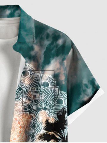 Chemise hawaïenne grande taille à imprimé floral vintage ethnique et ciel ombré, motif cocotier, avec poches boutonnées, pour homme - Vert - Vert