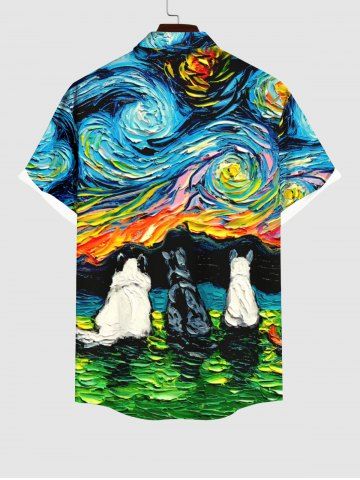 Chemise à Manches Courts> Chemisier avec Boutons en Peinture à L'Huile et Poches pour Hommes Grande-Taille