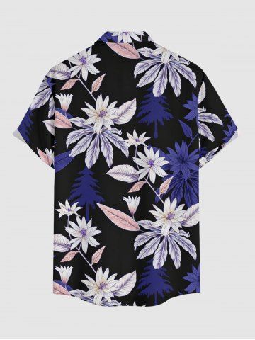 Men's Plus Size Flower Leaf Print Hawaii Button Pocket Shirt - Concorde - L