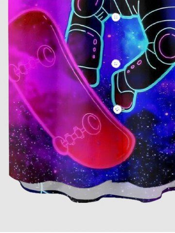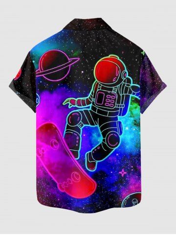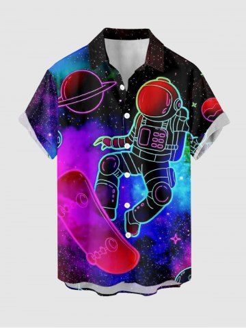 Plus Size Astronaut Planet Skateboard Galaxy Print Hawaii Button Pocket Shirt For Men - Pourpre - Pourpre