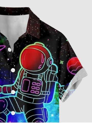 Chemise à Manches Courts> Plus Size Astronaut Planet Skateboard Galaxy Print Hawaii Button Pocket Shirt For Men