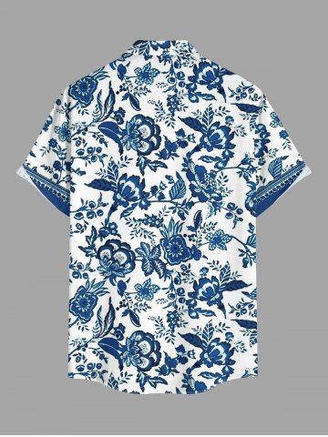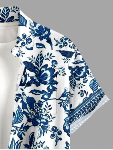 Plus Size Blue And White Porcelain Flowers Leaf Print Buttons Pocket Hawaii Shirt For Men - Blanc - Blanc