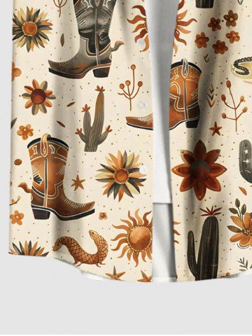 Plus Size Cactus Plant Floral Sun Boots Print Hawaii Button Pocket Shirt For Men - Café Lumière - M
