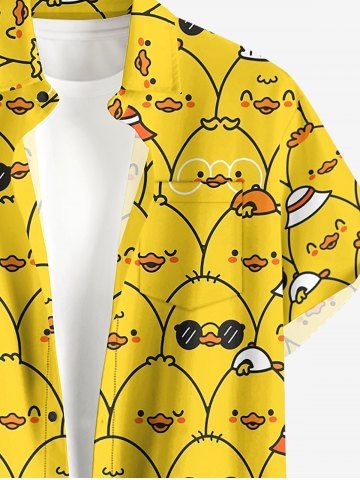 Chemise à Manches Courts > Plus Size Cartoon Ducks Print Buttons Pocket Hawaii Shirt For Men