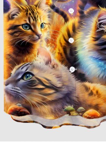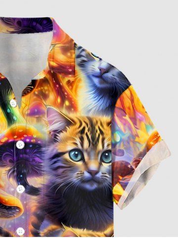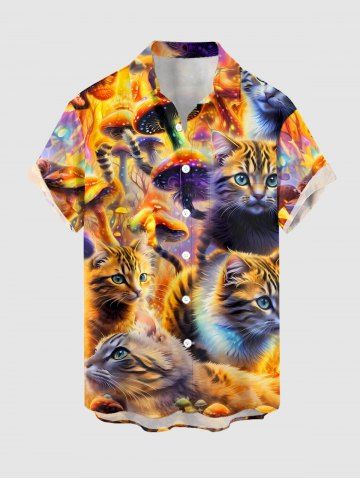 Plus Size Cat Mushroom Print Hawaii Button Pocket Shirt For Men - Brun Doré - M