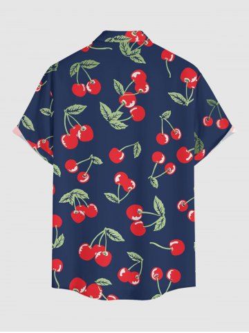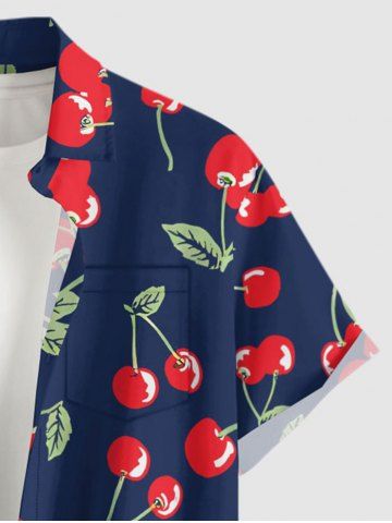 Chemise à Manches Courts > Plus Size Cherry Print Hawaii Button Pocket Shirt For Men