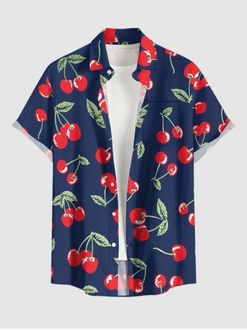 Chemise à Manches Courts > Plus Size Cherry Print Hawaii Button Pocket Shirt For Men