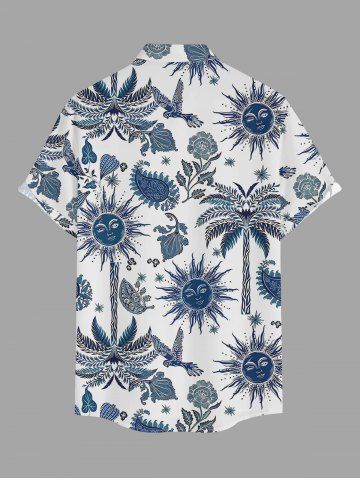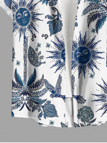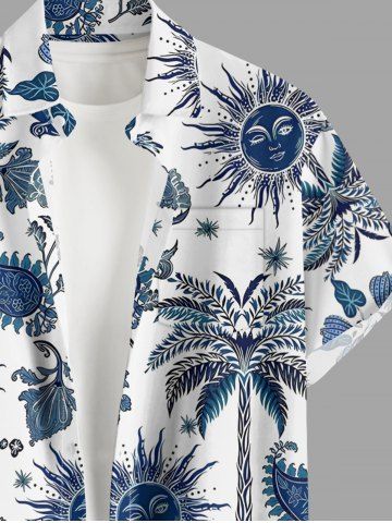 Plus Size Coconut Tree Flower Leaf Bird Sun Paisley Print Hawaii Button Pocket Shirt For Men - Bleu Marine - Bleu Marin