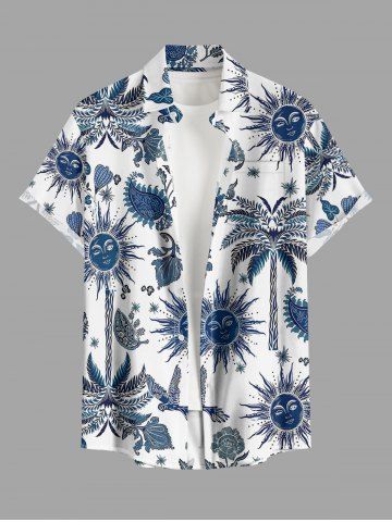 Chemise à Manches Courts> Plus Size Coconut Tree Flower Leaf Bird Sun Paisley Print Hawaii Button Pocket Shirt For Men