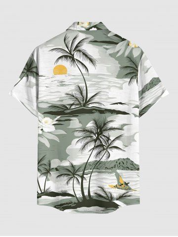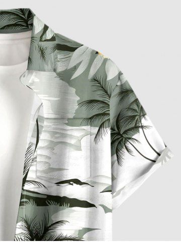 Plus Size Coconut Tree Flower Sun Print Buttons Pocket Hawaii Shirt For Men - Vert Clair - Vert Clair