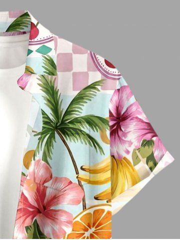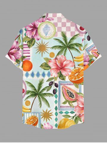 Chemise à Manches Courts > Plus Size Coconut Tree Hibiscus Flower Fruit Sun Print Hawaii Button Pocket Shirt For Men