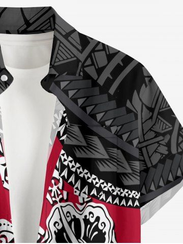 Plus Size Coconut Tree Hibiscus Flowers Geometric Pattern Print Buttons Pocket Hawaii Shirt For Men - Rouge - Rouge