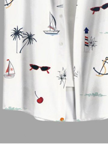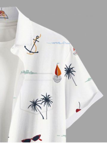 Plus Size Coconut Tree Lighthouse Sunglasses Fruit Juice Print Buttons Pocket Hawaii Shirt For Men - Blanc - Blanc