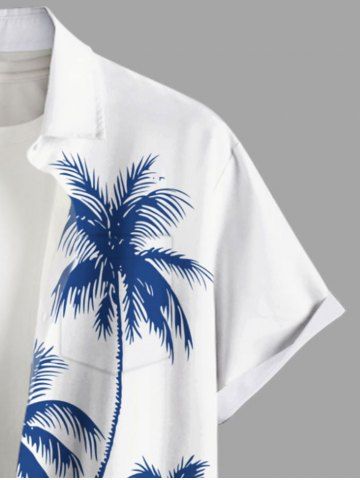 Plus Size Coconut Tree Mountain Cloud Print Buttons Pocket Hawaii Shirt For Men - Blanc - Blanc