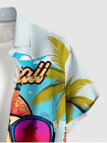 Plus Size Coconut Tree Octopus Letters Print Hawaii Button Pocket Shirt For Men - Bleu Clair - Bleu Clair