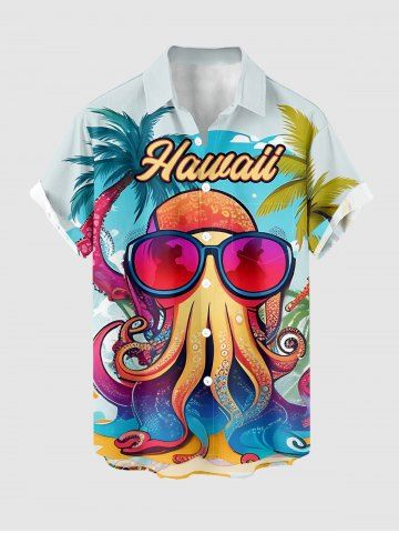 Chemise à Manches Courts > Plus Size Coconut Tree Octopus Letters Print Hawaii Button Pocket Shirt For Men