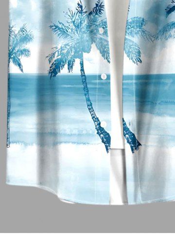 Plus Size Coconut Tree Ombre Cloud Print Buttons Pocket Hawaii Shirt For Men - Blanc - Blanc