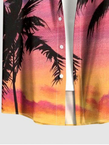 Plus Size Coconut Tree Ombre Cloud Sky Print Buttons Pocket Hawaii Shirt For Men - Rose - Rose