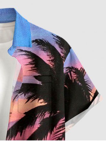 Chemise à Manches Courts> Plus Size Coconut Tree Ombre Cloud Sky Print Buttons Pocket Hawaii Shirt For Men