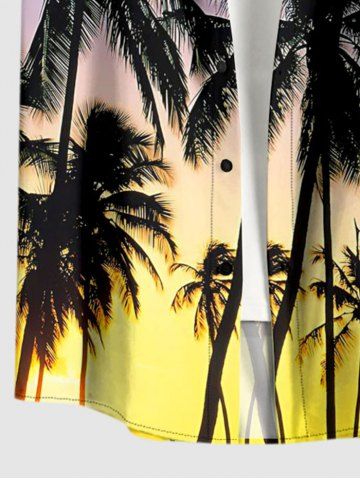 Chemise à Manches Courts> Plus Size Coconut Tree Ombre Colorblock Print Buttons Pocket Hawaii Shirt For Men